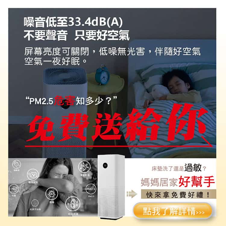睡覺時可以把空氣清淨機調成睡眠模式,並盡量在不影響睡眠的狀況下,將空氣清淨機的位置移到人旁邊,因為良好的睡眠品質,是增加人體免疫力最好的方法,但如果在睡眠中,呼吸的空氣品質太差,會導致鼻子過敏,造成鼻子發炎、鼻塞,嚴重甚至會導致睡眠呼吸中止症,造成睡眠被中斷影響睡眠品質,進而讓免疫力降低,所以睡覺時一定要啟動空氣清淨機。